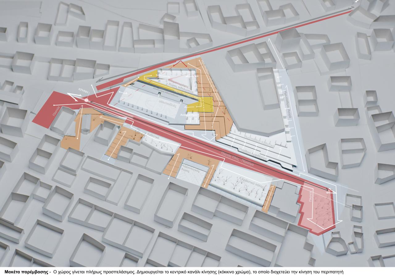 A wide public path is formed in the core of the public space