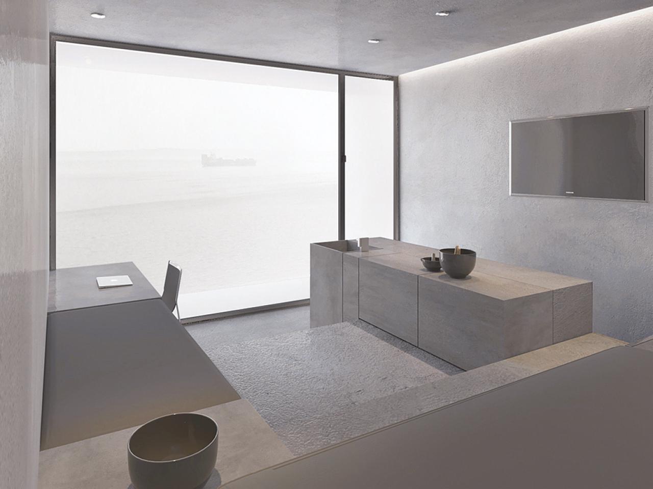 The gradual revelation of spaces instills theatricality in every motion. The visual integration of separate parts contributes to perceiving space as a sui generis theatrical setting. It is a spatial setting made of levels linking elements of the inner space.