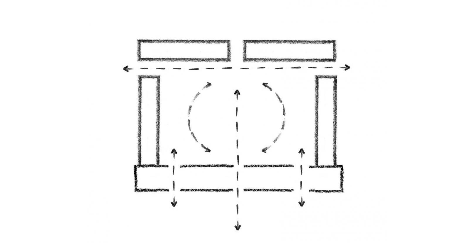 Οι εγκάρσιοι εσωτερικοί τοίχοι των καταστημάτων, αντικαθίστανται με ελαφριά στοιχεία πλήρωσης, που ανταποκρίνονται στον ευέλικτο χαρακτήρα μιας σύγχρονης Αγοράς με διαρκώς μεταβαλλόμενες ανάγκες χώρου.