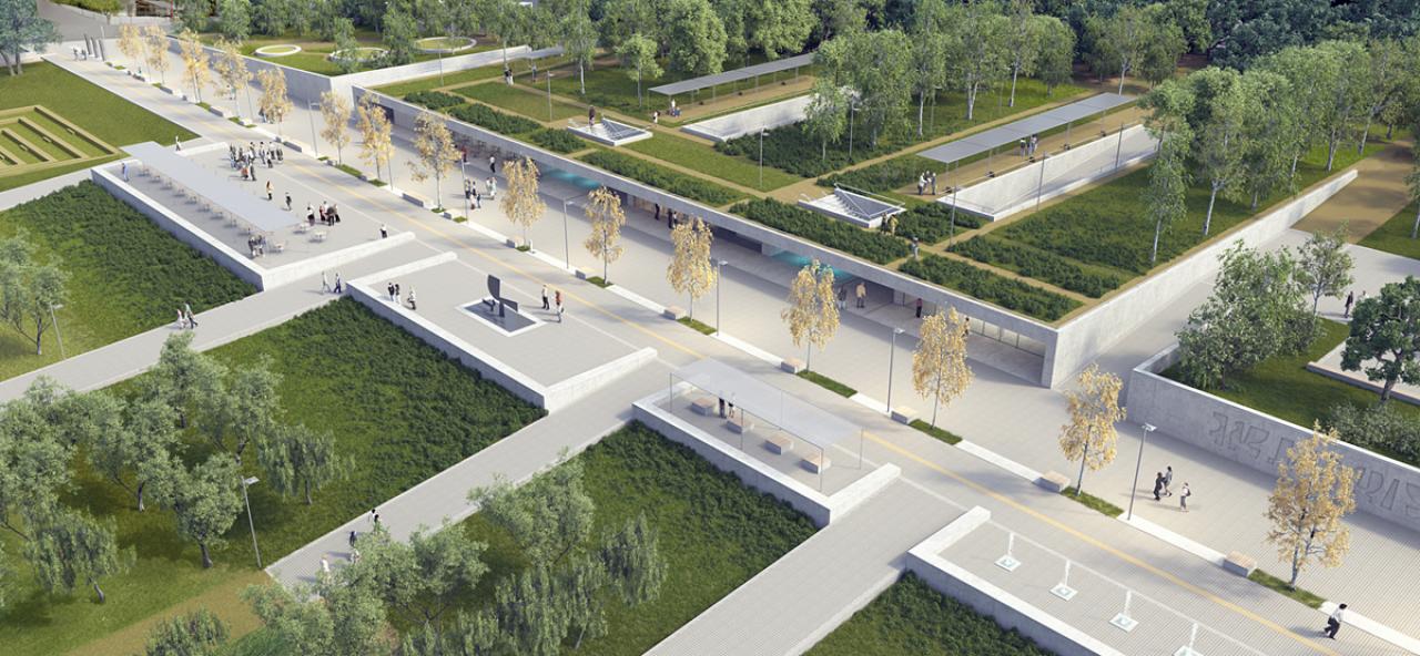 The proposal is to create an access network to the proposed park. This will operate as a framework regulating and providing access to different functionalities. The composition’s outline with its main and secondary axis is intended to channel circulation in the city from the inner core to the individual functional hubs. The inner pathway network—both main and secondary—could be perceived as a parallel miniature model of city functions.