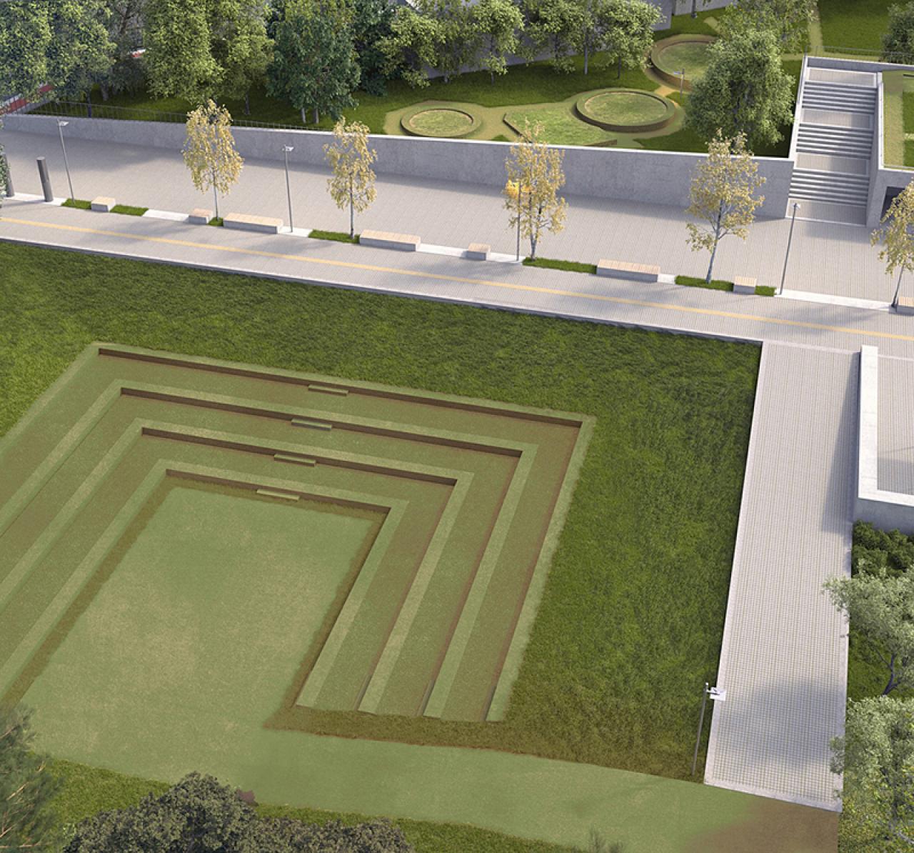 The elevated northern part of the area rises 10m above the southern part and takes advantage of the existing natural terrain for the construction of underground spaces (exhibition spaces, multipurpose hall, cafeteria/restaurant). The two extensive green areas created on the northern and southern limits of the composition are interconnected through a pathway network. Activity hubs (sport facilities, semi-open air resting points, children’s play areas, open-air theatre for various venues) are included in the green areas synthetically, functionally and materially.